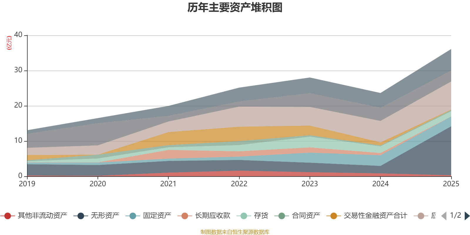 资产重大变化方面,截至2025年末,公司无形资产较上年末增加555.04%,占公司总资产比重上升29.5个百分点;货币资金较上年末减少16.86%,占公司总资产比重下降7.25个百分点;固定资产较上年末减少8.55%,占公司总资产比重下降5.15个百分点;存货较上年末减少20.8%,占公司总资产比重下降3.87个百分点。