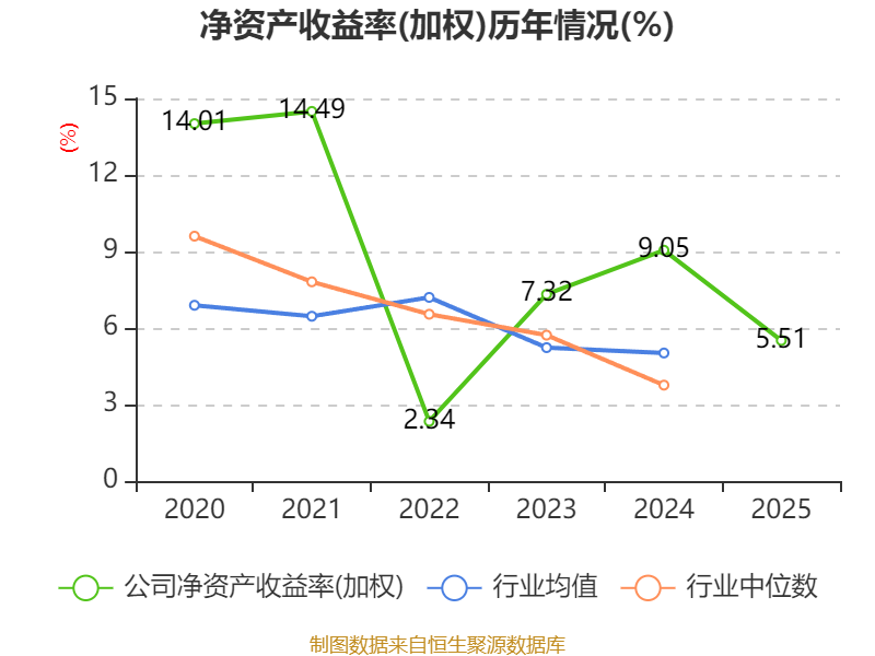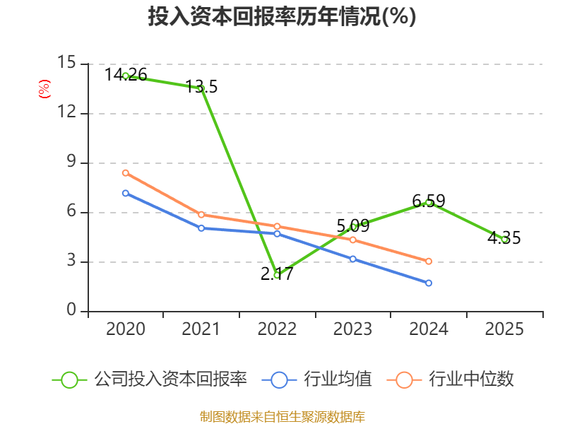 数据显示,2025年公司加权平均净资产收益率为5.51%,较上年同期下降3.54个百分点。公司2025年投入资本回报率为4.35%,较上年同期下降2.24个百分点。