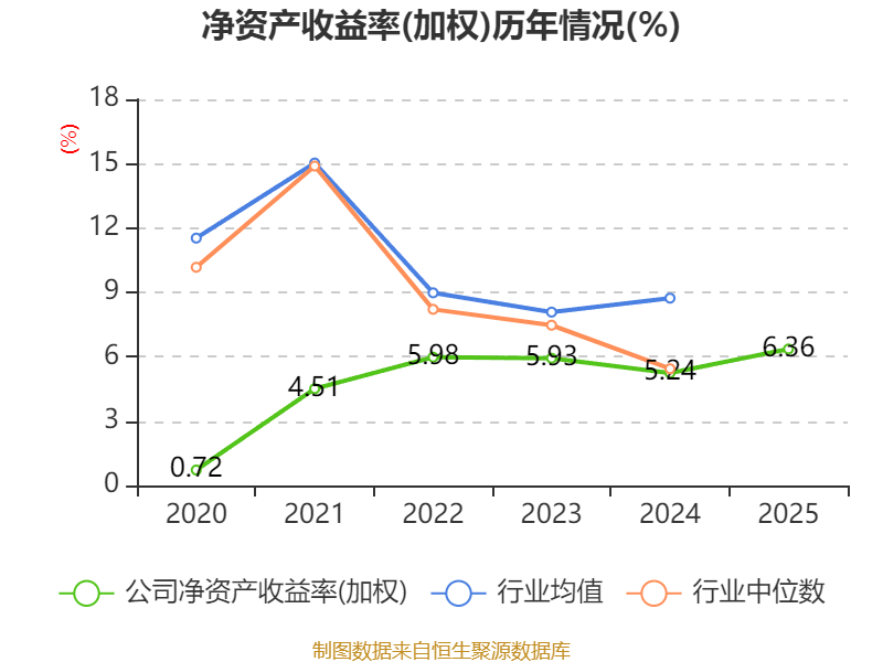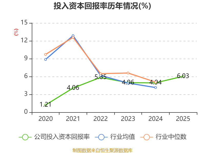 数据显示,2025年公司加权平均净资产收益率为6.36%,较上年同期上升1.12个百分点。公司2025年投入资本回报率为6.03%,较上年同期上升1.09个百分点。
