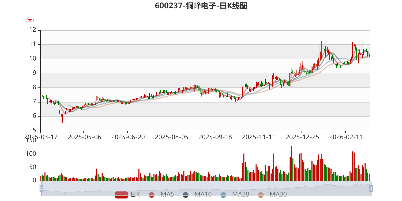 中证智能财讯铜峰电子(600237)3月17日披露2025年年度报告。2025年,公司实现营业总收入13.95亿元,同比增长8.31%;归母净利润1.2亿元,同比增长25.24%;扣非净利润1.09亿元,同比增长26.89%;经营活动产生的现金流量净额为2.03亿元,同比增长5.53%;报告期内,铜峰电子基本每股收益为0.19元,加权平均净资产收益率为6.36%。公司2025年度分配预案为:拟向全体股东每10股派现0.8元(含税)。