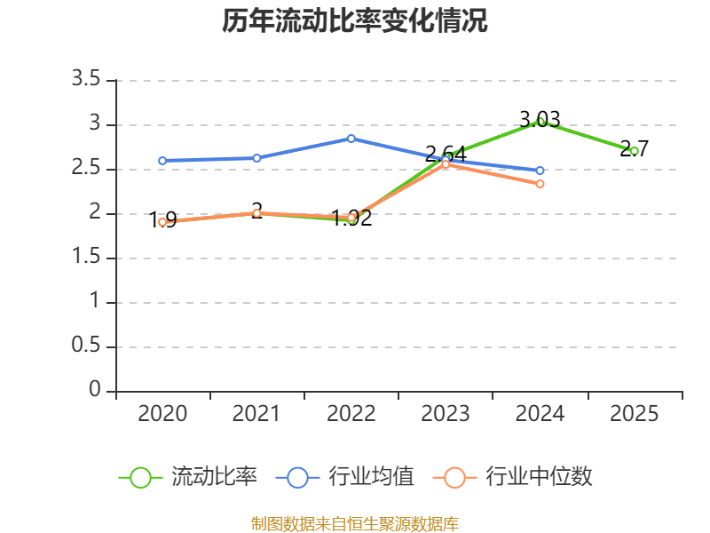 2025年,公司流动比率为2.7,速动比率为2.29。