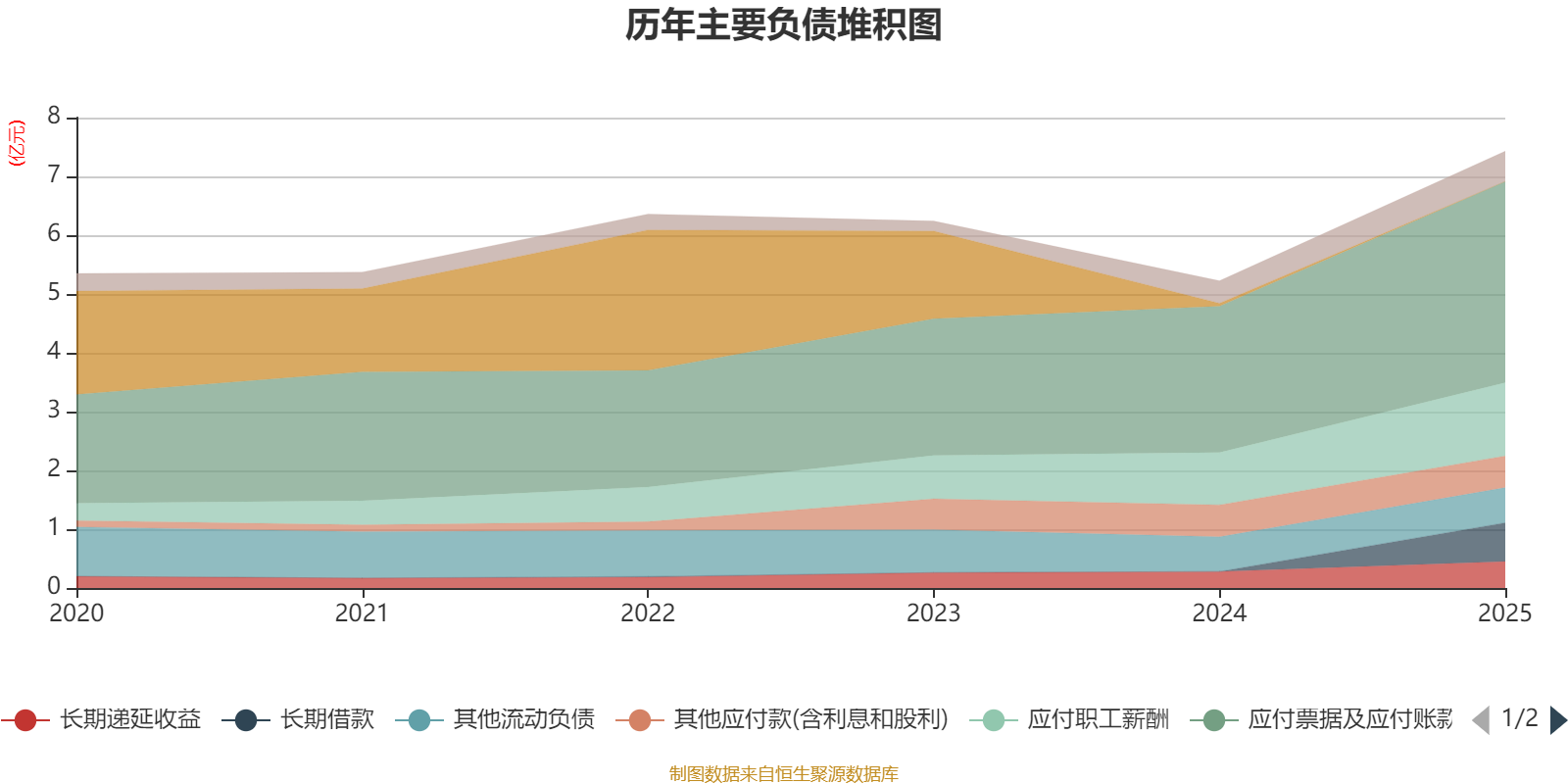 负债重大变化方面,截至2025年末,公司长期借款占公司总资产的2.41%,上年末为0;应付票据及应付账款较上年末增加37.52%,占公司总资产比重上升2.22个百分点;应付职工薪酬较上年末增加39.87%,占公司总资产比重上升0.87个百分点;长期递延收益较上年末增加60.75%,占公司总资产比重上升0.49个百分点。