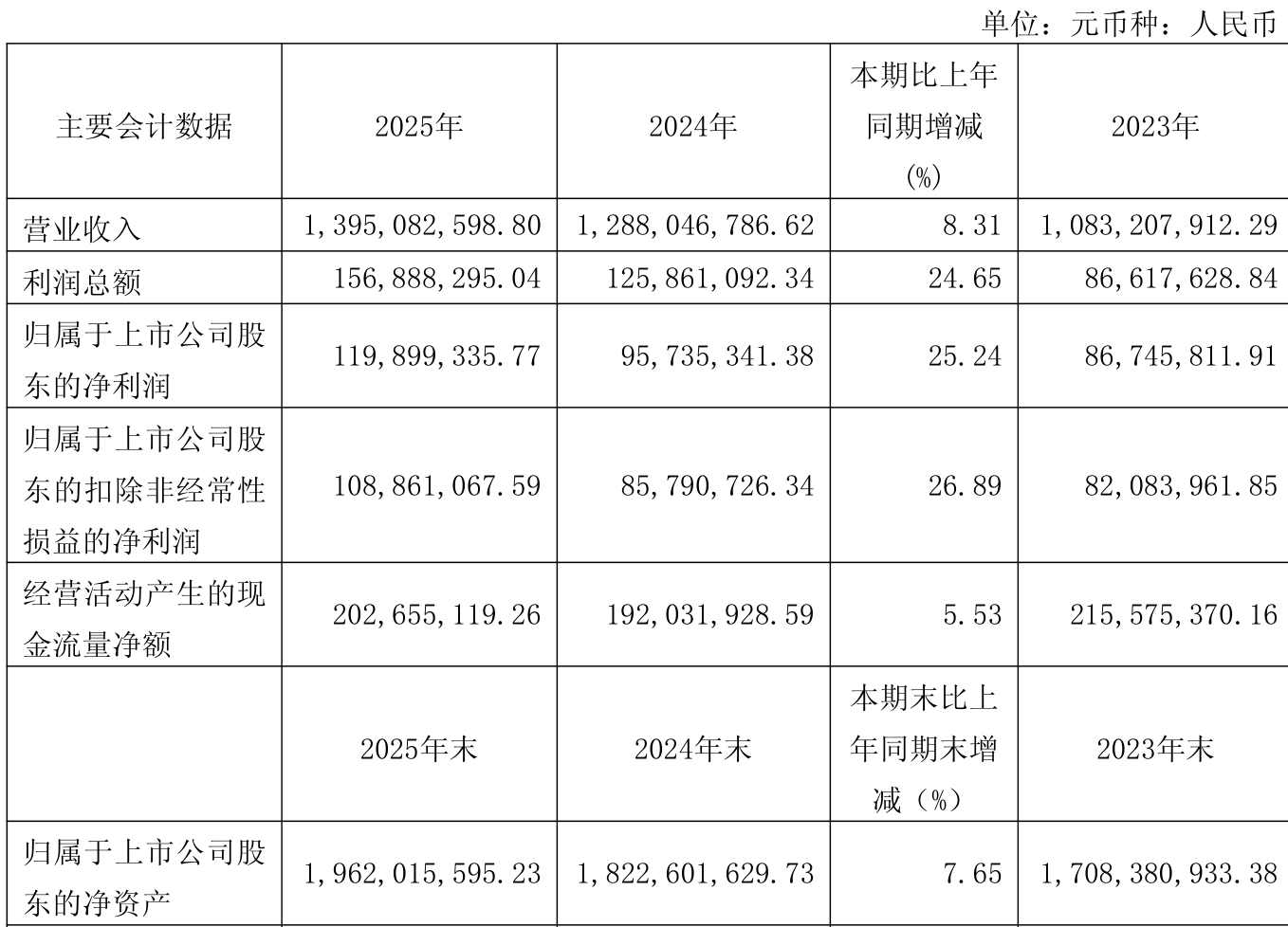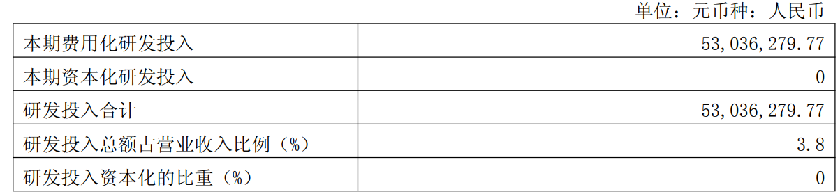 2025年全年,公司研发投入金额为5303.63万元,同比增长11.19%;研发投入占营业收入比例为3.8%,相比上年同期上升0.1个百分点。此外,公司全年研发投入资本化率为0%。