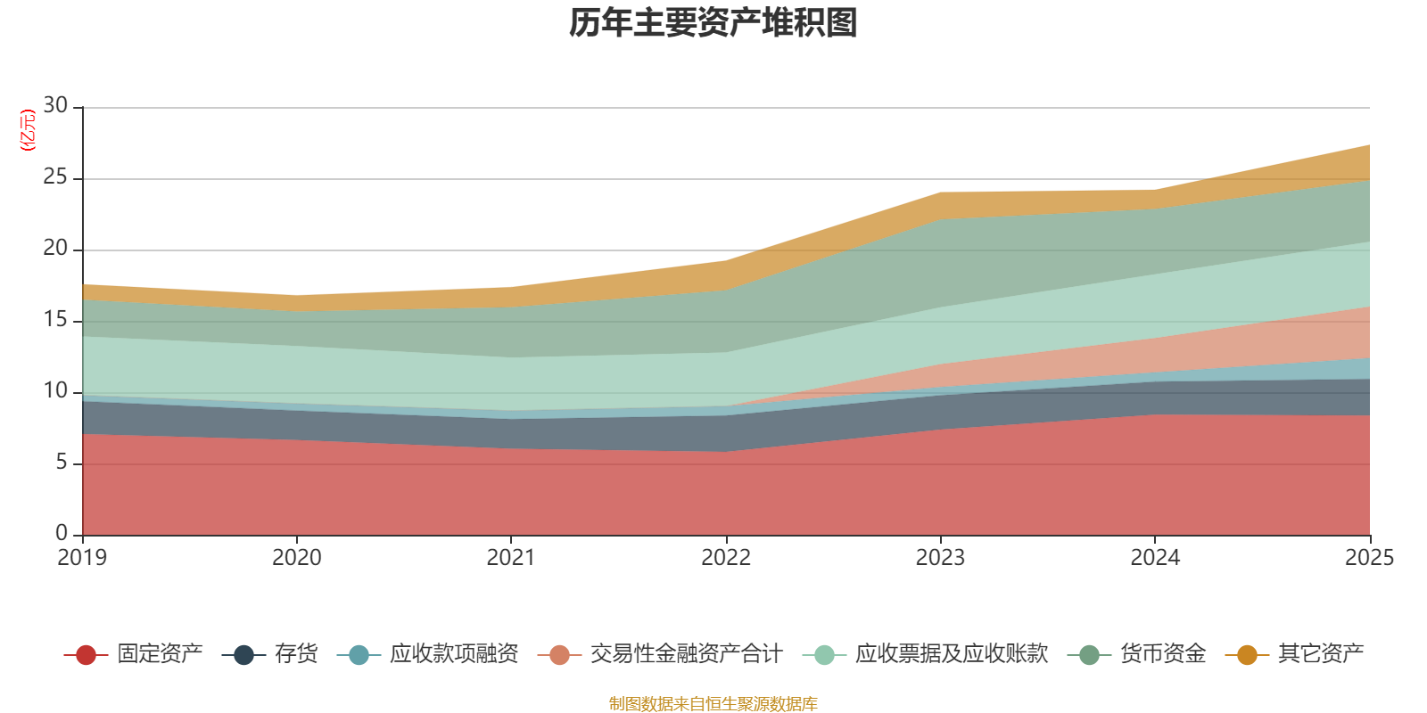 资产重大变化方面,截至2025年末,公司固定资产较上年末减少0.69%,占公司总资产比重下降4.24个百分点;在建工程合计较上年末增加1292.9%,占公司总资产比重上升4.17个百分点;交易性金融资产合计较上年末增加50.05%,占公司总资产比重上升3.25个百分点;货币资金较上年末减少6.01%,占公司总资产比重下降3.2个百分点。