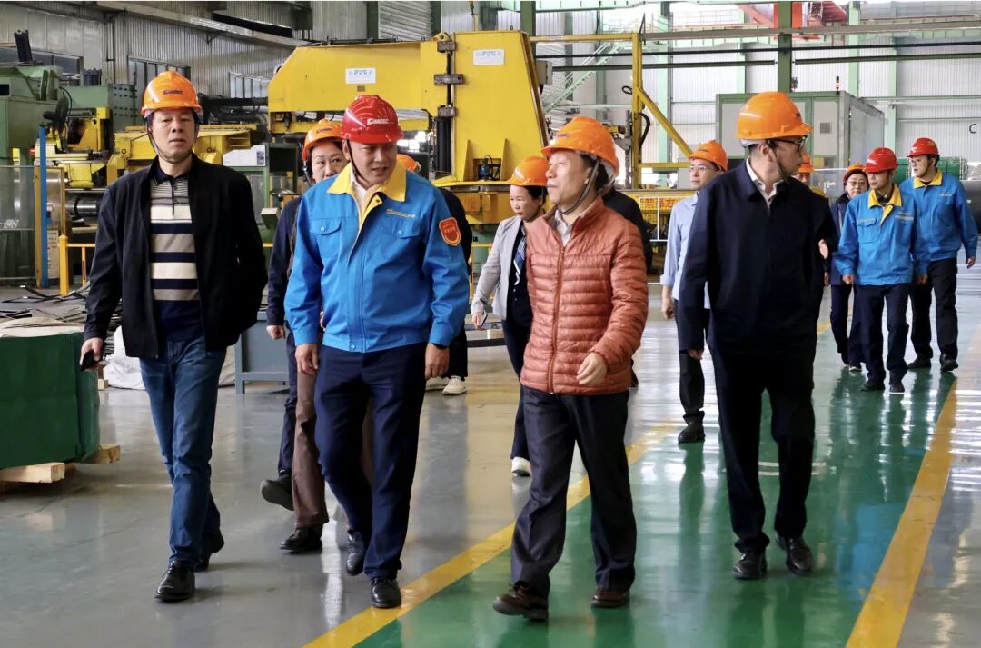 调研期间,曹垂龙副主席一行在倪晨总经理的陪同下,实地深入太原大明生产车间调研,现场察看了金属材料精密裁剪、高精度切割、板材矫平、坡口铣边等核心工序作业流程,了解了各工艺环节的技术特点及智能化应用水平。